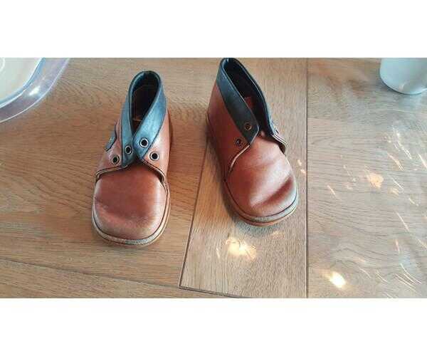 Fine antikke børnesko. Ca 35 år gamle. Mangler snørebånd. Bud modtages. Køber betaler porto