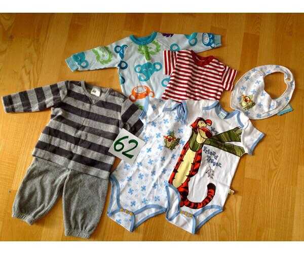 Andet, Drengetøjspakke, Blandet, str. 50 Pakke i størrelse 50-56 Indeholder: 6 langærmede bodyer 3 kortærmede bodyer 2 langærmede bluser 1 T-shirt 1 par underbukser 7 par bukser 1 par strømpebukser 2 huer 2 par sokker 1 heldragt 1 sparkedragt 1 par s