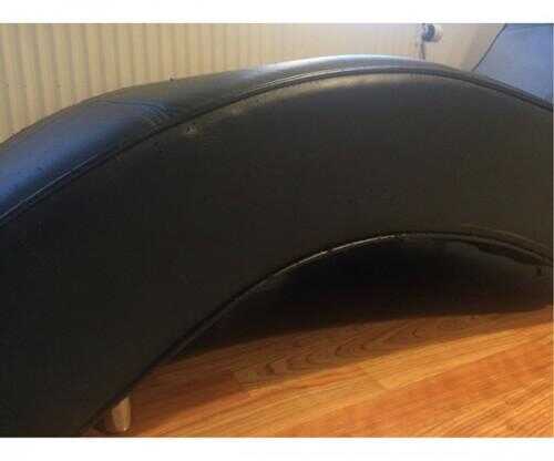 Chaiselong, læderlook, 4 pers. , husker ikke Sort sofa med chaiselong i sort imiteret læder Er brugt og har 2 små rifter i læder men er ikke lydeligt Billeder vedlagt af sofa og skader Ben til sofa medfølger og det hvide bord på billedet kan købes me