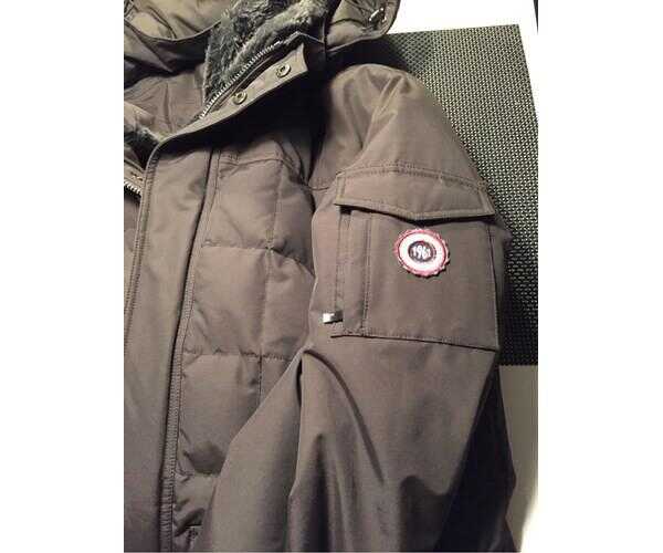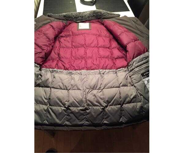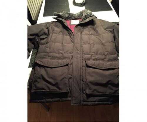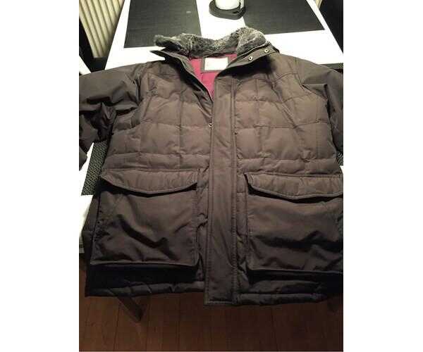 God og varm jakke med aftagelig hætte.Der er pletter foran, ka..