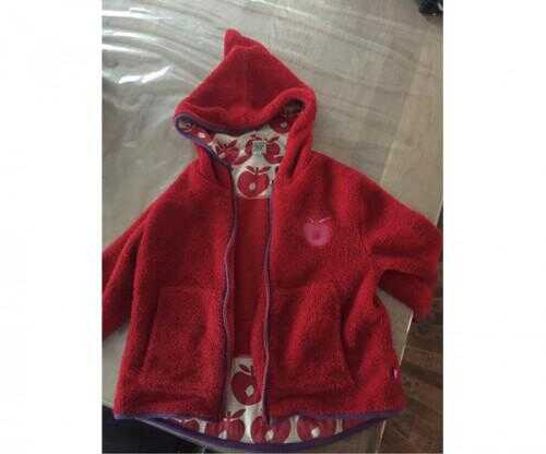 Fleece, Fleecetrøje, Småfolk, str. 86 Lilla med pink kontrast. Æblelogo på front. Med hætte. Fejler intet Vasket i Neutral og aldrig tørretumbletType: Fleece Mærke: Småfolk Produkt: Fleecetrøje Størrelse: 86Marlene R.Gelsted Byvej 95591 Gelsted225258