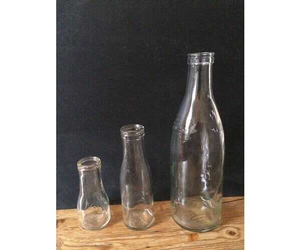 5 stk Mælkeflasker i forskellige mål. Sælges samlet