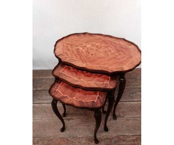 Indskudsbord i rosentræ med indlagte mønstre. Et pænt bord, der måler i cm (det største af de 3 borde): 65b x 45d x 57h. Afhentes forProdukt: IndskudsbordNiels H.Kongshusvej 146, Fillerup8300 Odder20859010225 kr.