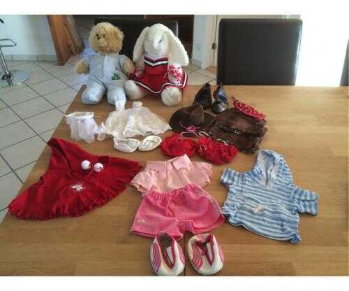 2 originale Build a Bear bamser med tilhørende tøj. 6 sæ..
