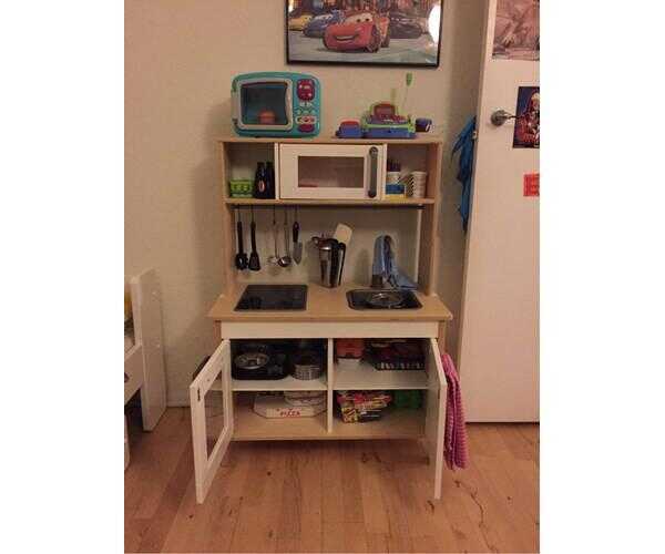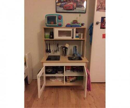 Børnekøkken, IKEA http://m.ikea.com/dk/da/catalog/products/art/70129801/ + top med mikroovn hylder. Komfuret kan lyse. Rester efter klistermærker, men i fin stand.Produkt: Børnekøkken Mærke: IKEALauritz J.Fordresgårdvej 132400 København NV29788334450