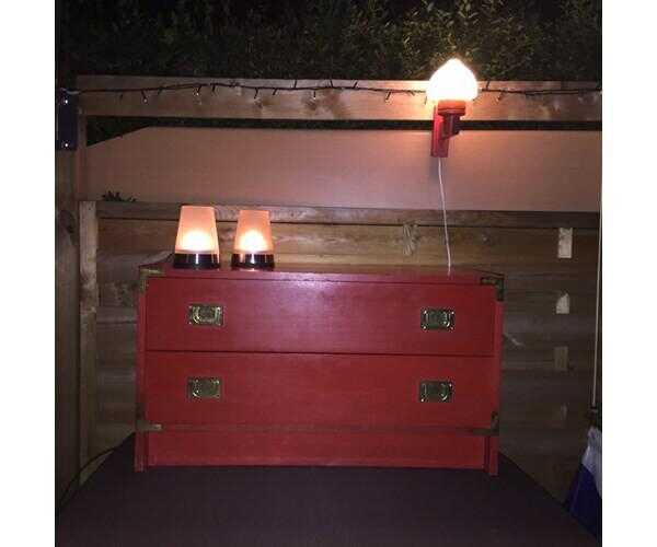 Rødbejdset + lampet i sammefarve er fra sidst i 60'erne