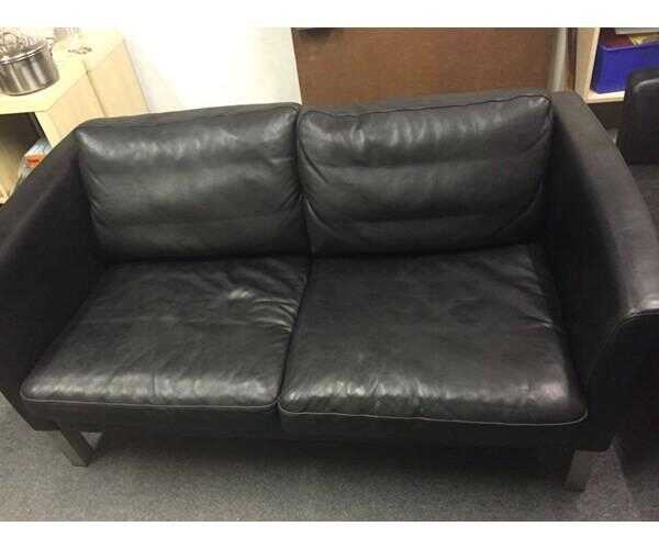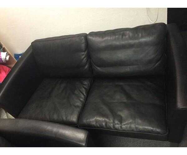 2 stk sorte læder sofaer ingen revner eller skader men med brugs..