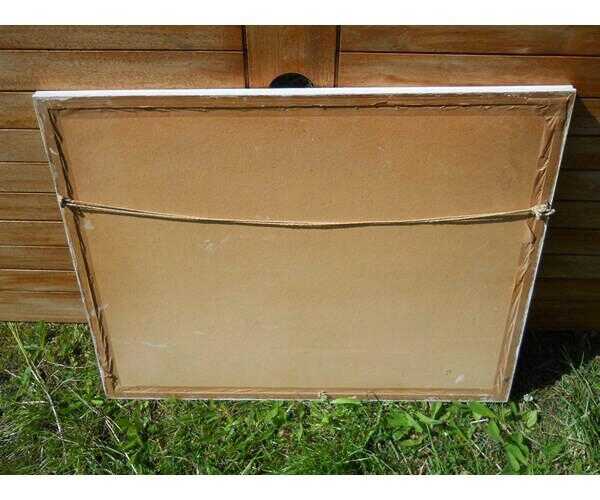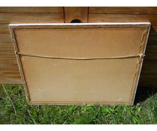 Oliemaleri, Olaf Karlsen, motiv: Landskab, stil: Naturalistisk, b: 500mm h: 400mm Billedet hedder "Den Lyse Nat". Trænger til en kærlig hånd og opfriskning..Type: Oliemaleri Stilart: Naturalistisk Kunstner: Olaf Karlsen Bredde (cm): 500mm Motiv: