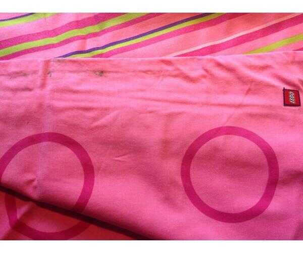 Sengetøj fra LEGO. Stadig blød og fin. Farvet er bl..