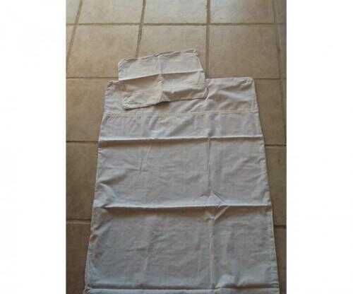 Sengetøj, Junior dyne/pude betræk, Jysk Hvid/lyseblå, lukkes med trykknapper. Jeg målte den til 135x105cmType: Sengetøj Mærke: Jysk Produkt: Junior dyne/pude betrækMandana G.Bavnegårdsvej 578361 Hasselager4074676725 kr.