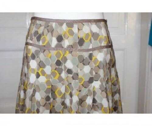 Silkenederdel - flot grafisk mønster, str. 38, Peter Kahn