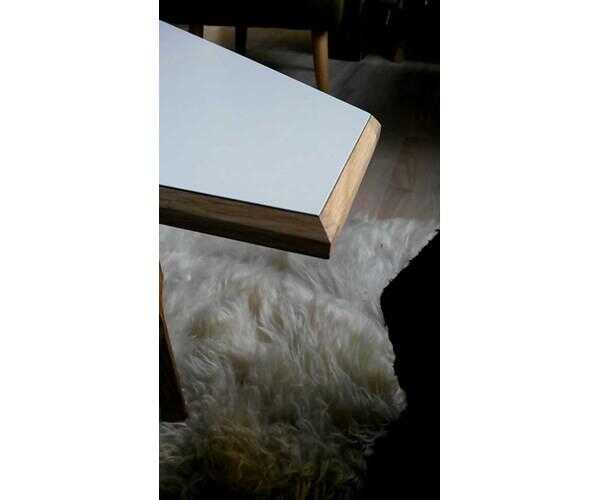 Sofabord sælges. Bordpladen er med laminat og kanter og ben i massivt egetræ.