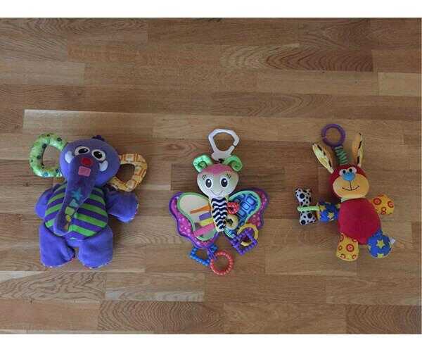 Forskelligt legetøj til baby. Elefanten til højre er me..