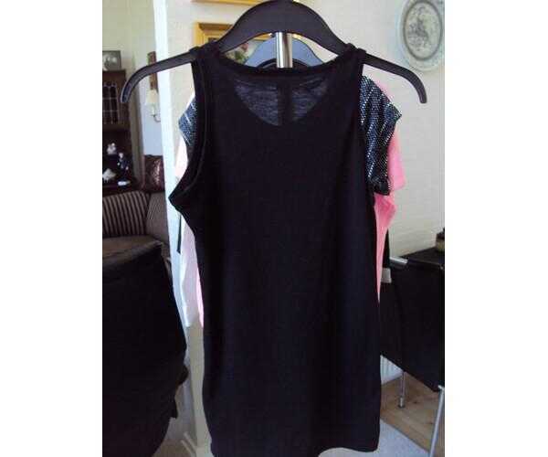 Flot sort top med palietter. Lynlås i den ene side. Justerbare stro..