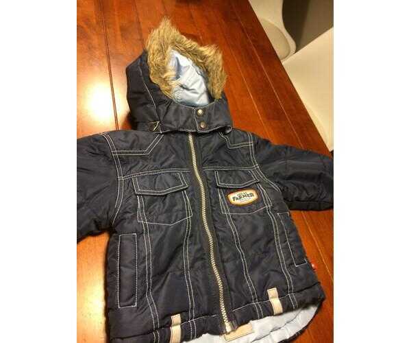 Meget pæn vinterjakke i mørkeblå med hætte. Ingen huller